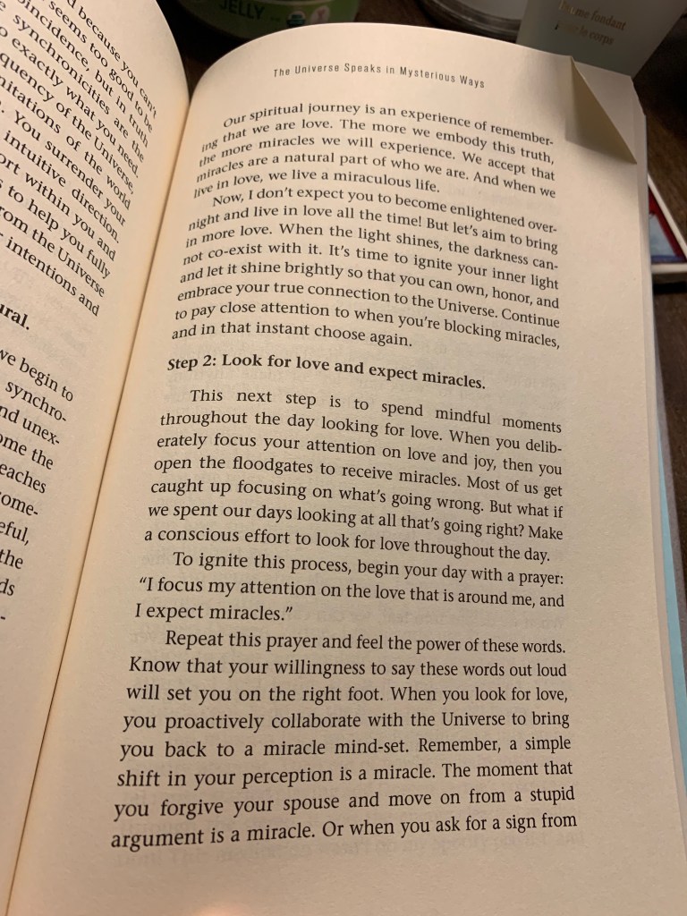 The other night as I picked up Gabby Bernstein’s book, The Universe Has Your Back (which I’ll admit that I have been on and off reading for way too long), the following step jumped right out at me – looking for love and expecting miracles.