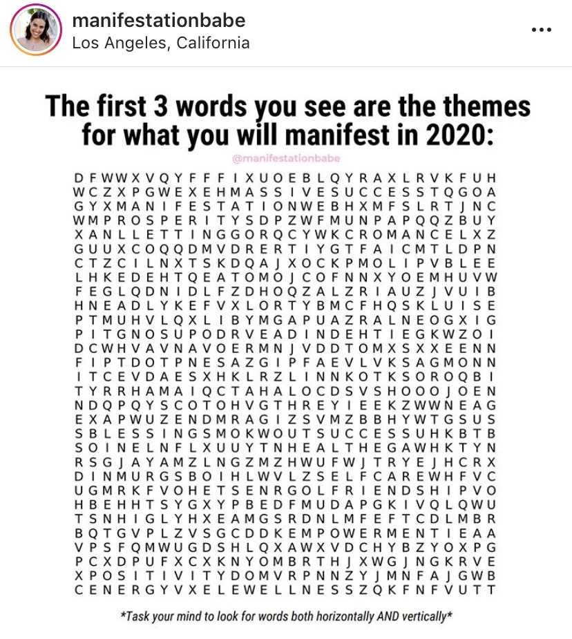 But do you ever take time to manifest those goals or as @manifestationbabe suggests in this fun exercise, what themes will come your way in 2020?