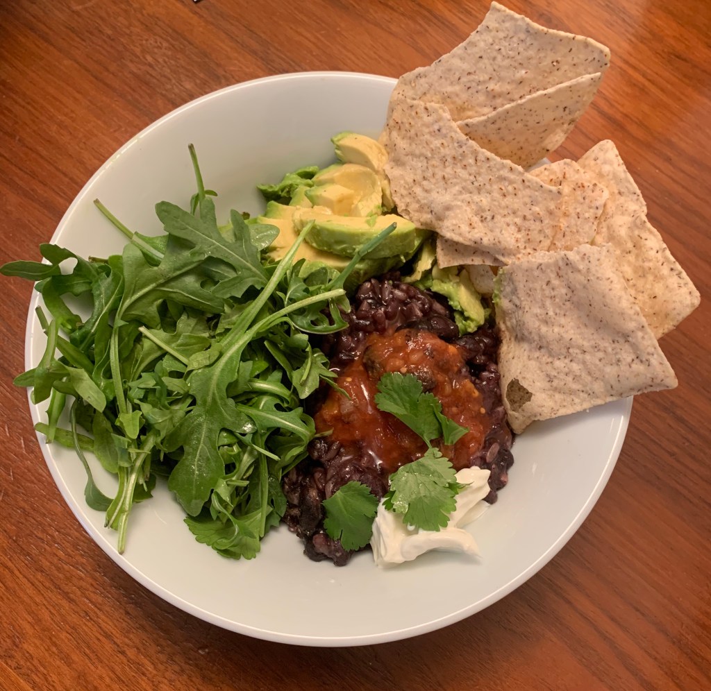It was great to customize the recipe to suit my mood, as well as what I had on-hand and because it’s so versatile, I changed up how I ate it every day depending on what my body was craving. First, I loved it with all of the fixings – lettuce, salsa, sour cream, cilantro, cheese and chips. Then, it was perfect with some fried eggs!