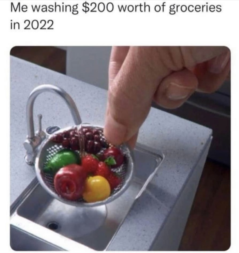 With the prices of grocery bills continuing to climb and rippling effects of inflation, you can’t help but laugh a bit at this image because it feels very accurate.