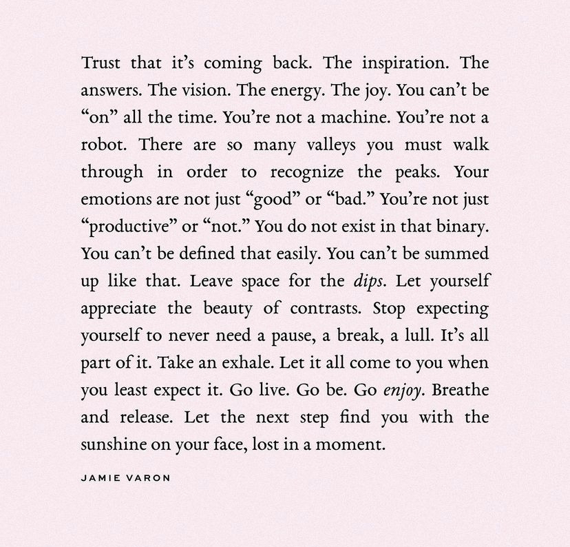 Whether it’s the current state of the world with all the horrible news we see each day or Mercury in Retrograde or perhaps just something else going on in your life, I hope these beautiful words from Jamie Varon are just what you need to read right now, too.