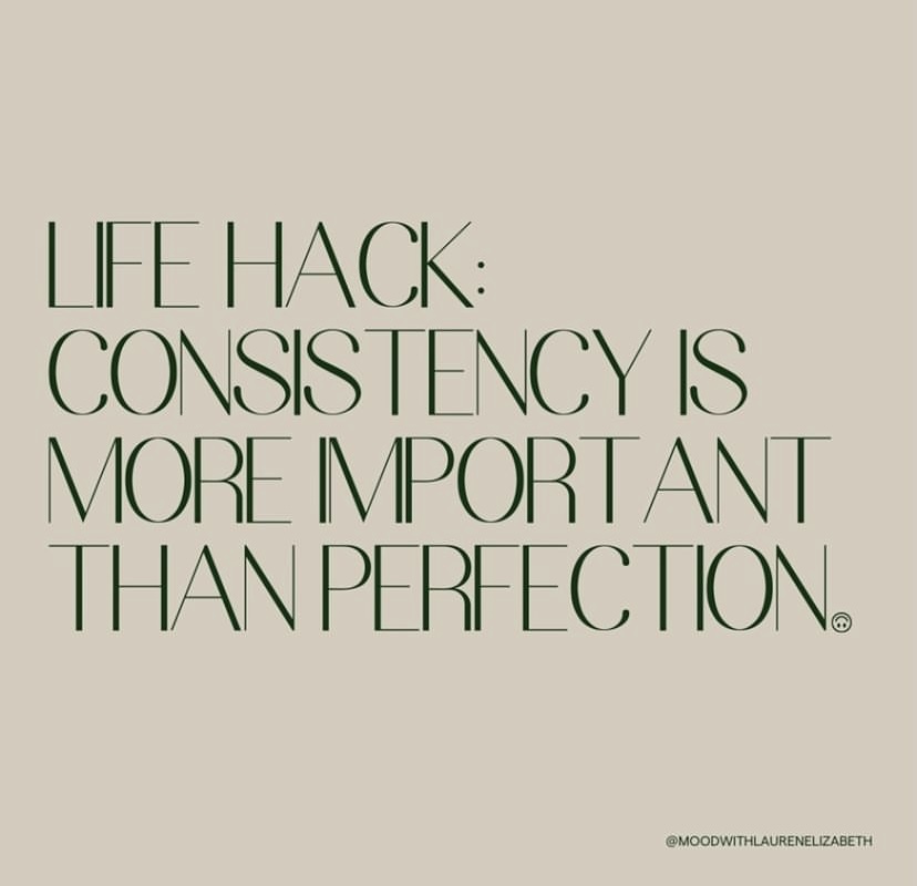 Whether it’s getting back into a cleaner eating/living routine, better work/life balance, regular workout regimen, or setting aside time for whatever you want right now, love this important reminder to strive for consistency, not perfection, this fall.