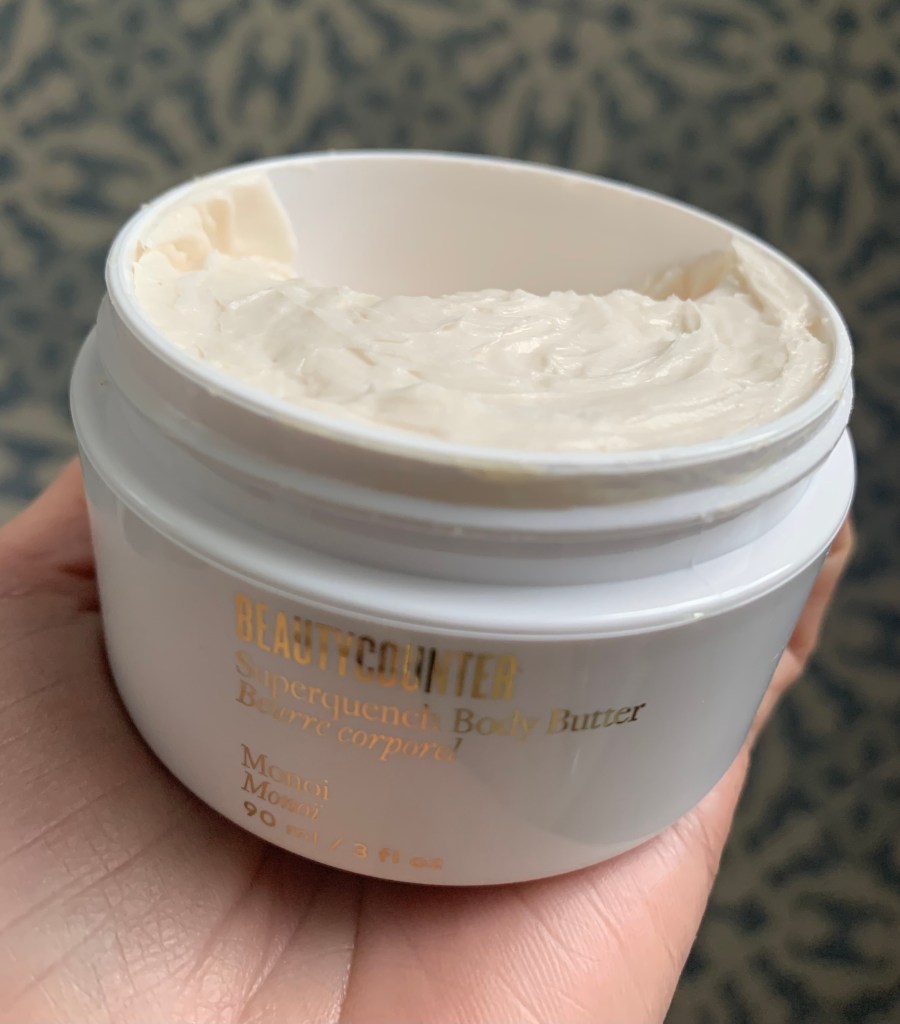 Next, top them with the rich and non-greasy Superquench Body Butter. Your hands will be so deeply hydrated and you’ll wake up to smoother hands. Not to mention, thanks to the insanely amazing Monoi scent, you will probably dream about a tropical vacation, which we could all probably use right now?!