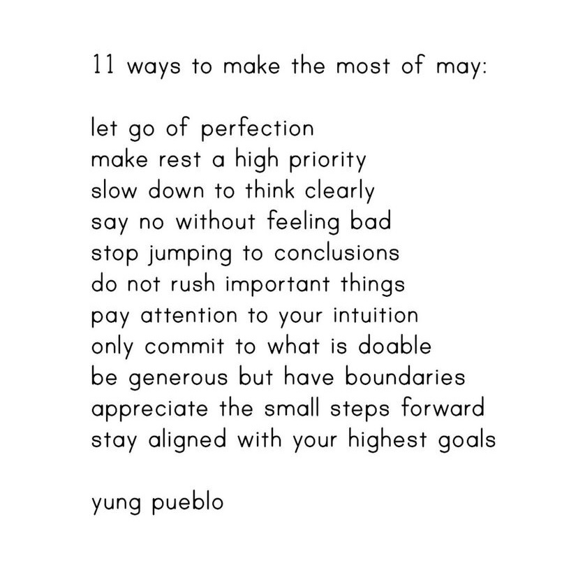 Love the promise of a new month and this PSA from Yung Pueblo about 11 ways we can make the most of May.