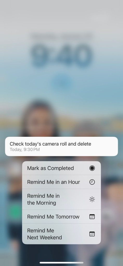 Start by setting a daily reminder to clean up your camera roll and choose whatever time is most convenient for you – for me, it’s 9:30pm when at least one of my kids is in bed, ha!