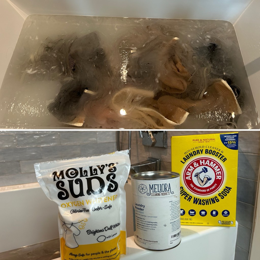I already had my Meliora detergent that I recently refilled from Sustainable Haus and quickly ordered washing soda and a cleaner whitener from Molly’s Suds, so we could get to work!