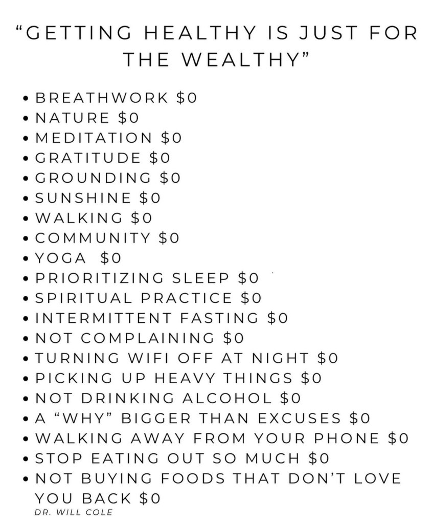 Getting healthy truly isn’t just for the wealthy, so let’s all take a moment to reflect and re-adjust our mindset to be grateful for and appreciate everything we already have before thinking we need more.