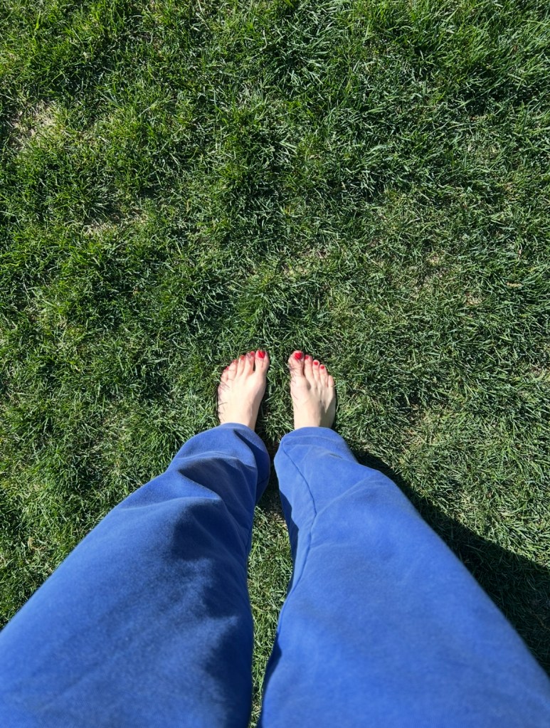 Grounding is putting your feet directly into the Earth, whether it’s grass, sand or dirt, for a few minutes and reaping such benefits as a mood boost, helping circulation, decreasing stress/anxiety and inflammation, bettering your sleep, to name a few.