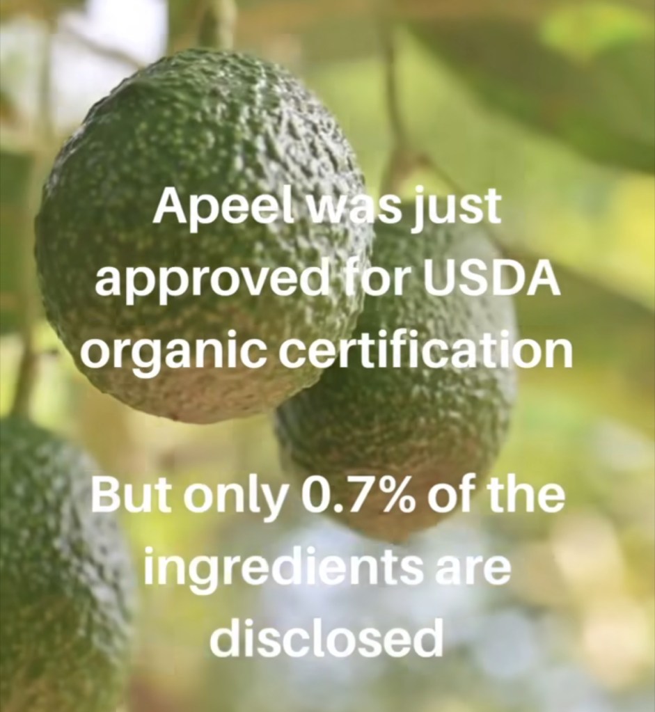 So, why does this matter and should this be of concern? Transparency!! Apeel Sciences, which manufactures Apeel and Organipeel, will not disclose its full ingredients and you may find this coating on produce like avocados, limes, lemons, grapefruits, mandarins and oranges. We have enough to worry about when it comes to pesticides, so why do we need another coating on our fruits and vegetables?! We don’t!!