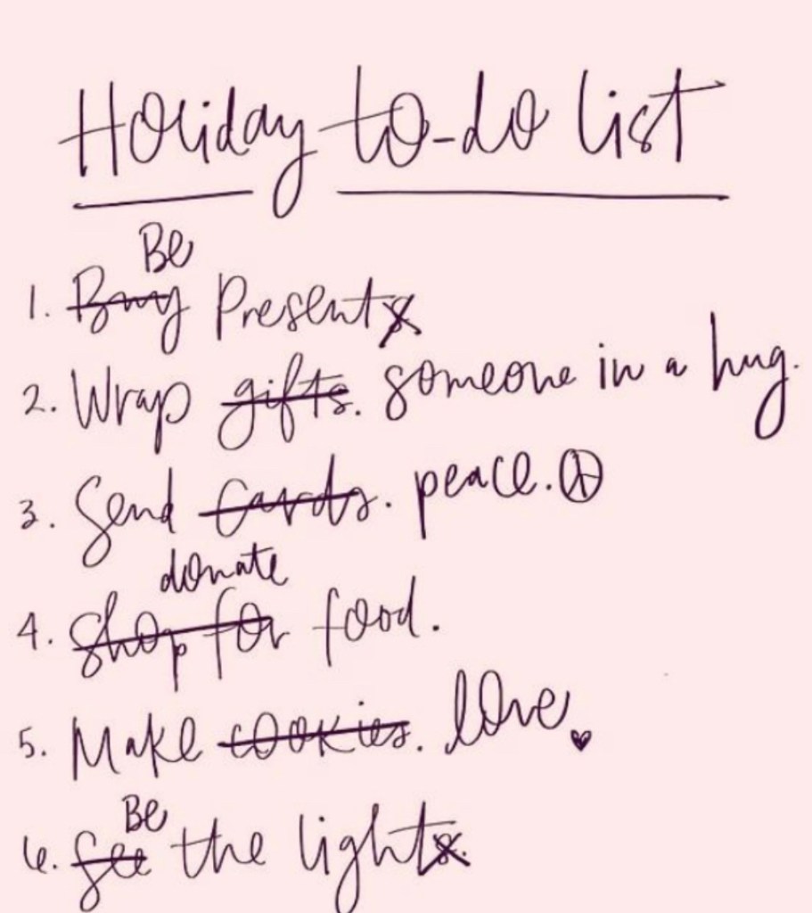 To help us all strike a better balance, let’s bring back this more mindful holiday to-do list. Sure, there is still a lot to do over the holidays, but let’s all vow to try – keyword is always try – to slow down, be more present and take in these moments.